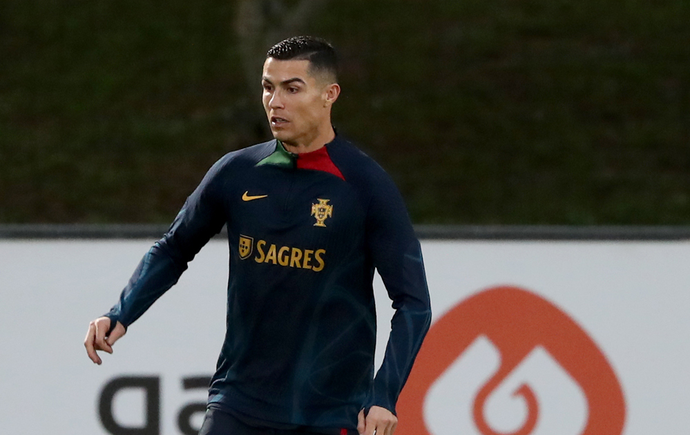 (221116) — OEIRAS, Nov. 16, 2022 (Xinhua) — Portugal’s Cristiano Ronaldo (C) attends a training session with teammates in Oeiras, Portugal, on Nov. 14, 2022, ahead of the Qatar 2022 World Cup. (Photo by Pedro Fiuza/Xinhua)