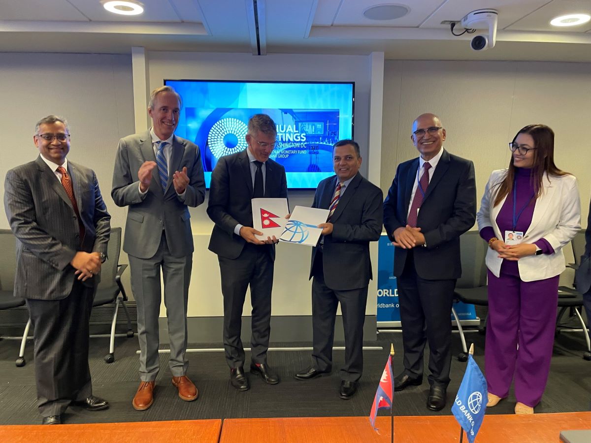 सम्झौतापत्रमा अर्थ मन्त्रालयका सचिव रामप्रसाद घिमिरे र नेपालका लागि विश्व बैंकका प्रतिनिधि डेविड सिसलेनले हस्ताक्षर गर्नुभएको छ । सम्झौताअनुसार विश्व बैंकले १५ करोड डलर उपलब्ध गराउने छ ।